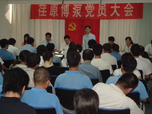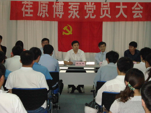 本次黨員大會(huì)由黨總支副書記姜作棟同志主持,他首先介紹了黨組織機(jī)構(gòu)的組成:張玉琴同志任黨總支書記,姜作棟同志任黨總支副書記,李正民同志、劉擁民同志、王興春同志分別任統(tǒng)戰(zhàn)委員、組織紀(jì)檢委員、文體宣傳委員。荏原博泵黨總支下設(shè)管理、生產(chǎn)、質(zhì)量和業(yè)務(wù)技術(shù)四個(gè)黨支部,管理黨支部書記由邱建剛同志擔(dān)任,生產(chǎn)黨支部書記由宋遵民同志擔(dān)任,質(zhì)量黨支部書記由郝圣同志擔(dān)任,業(yè)務(wù)技術(shù)黨支部書記由梁文運(yùn)同志擔(dān)任。各黨支部通過民主選舉選出了支部委員。在會(huì)上,黨總支書記張玉琴同志向全體黨員提出要求,一是加強(qiáng)學(xué)習(xí),提高素質(zhì);二是增強(qiáng)黨性,努力工作;三是加強(qiáng)領(lǐng)導(dǎo),發(fā)揮作用。著重強(qiáng)調(diào)了全體黨員不僅要有較高的政治素質(zhì),更要有很強(qiáng)的業(yè)務(wù)能力和技術(shù)水平。要一如既往的發(fā)揮黨員的先鋒模范作用,以企業(yè)經(jīng)濟(jì)發(fā)展為中心任務(wù),身先士卒,帶頭努力干好工作,在營(yíng)造團(tuán)結(jié)和諧的工作氛圍中發(fā)揮作用。公司總經(jīng)理孫龍平同志在黨員大會(huì)上代表行政領(lǐng)導(dǎo)班子作了重要發(fā)言,指出目前公司正處在打基礎(chǔ)的關(guān)鍵時(shí)期,邊建設(shè)、邊生產(chǎn)、邊供貨、邊發(fā)展。黨組織要充分發(fā)揮政治核心作用,領(lǐng)導(dǎo)工會(huì)、共青團(tuán)等群眾組織,團(tuán)結(jié)凝聚廣大員工,貫徹黨的方針政策,促進(jìn)企業(yè)健康發(fā)展。