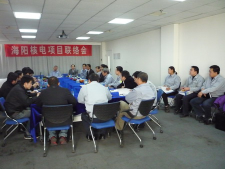 聯(lián)絡(luò)會(huì)主要是對(duì)我公司中標(biāo)海陽(yáng)核電項(xiàng)目一期工程2*1000MW項(xiàng)目中的開閉試泵和循環(huán)水泵的有關(guān)文件進(jìn)行確認(rèn),以及進(jìn)度計(jì)劃等后續(xù)開始的建造工作進(jìn)行商議。