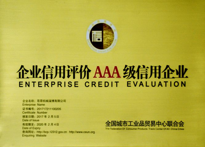 新聞中心熱烈祝賀荏原機(jī)械淄博有限公司獲得“全國信用評價(jià)AAA級企業(yè)”。